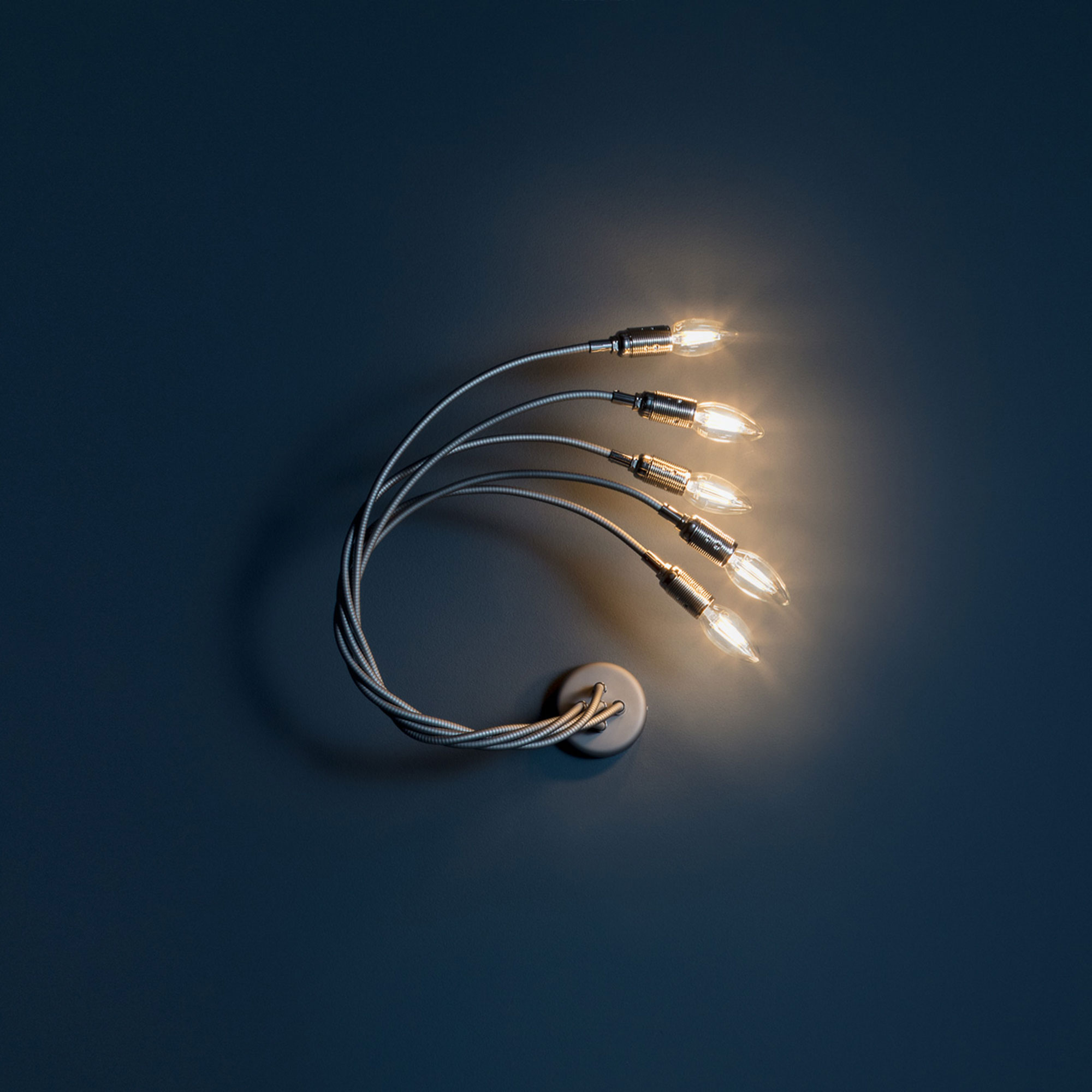 Vegglampen Turciù er én av en serie lamper, designet av Enzo Catellani for Catellani & Smith. Turciù karakteriseres av de fleksible metallarmene som lar brukeren forme lampens uttrykk. Vegglampen er laget for hånd og er tilgjengelig med 3, 5 eller 9 armer, ytterst på hver arm sitter en lyspære. Turciù er tilgjengelig i fire utførelser, rå messing, aluminium, nikkel og sateng. Lampen leveres med veggfeste i satinert jern. Takket være håndverket får hvert eksemplar av Turciù sin unike karakter, og de små forskjellene bidrar til sjarmen til serien. Eksklusivt laget for hånd i Italia, rett ved elven Serio i traktene rundt Bergamo.