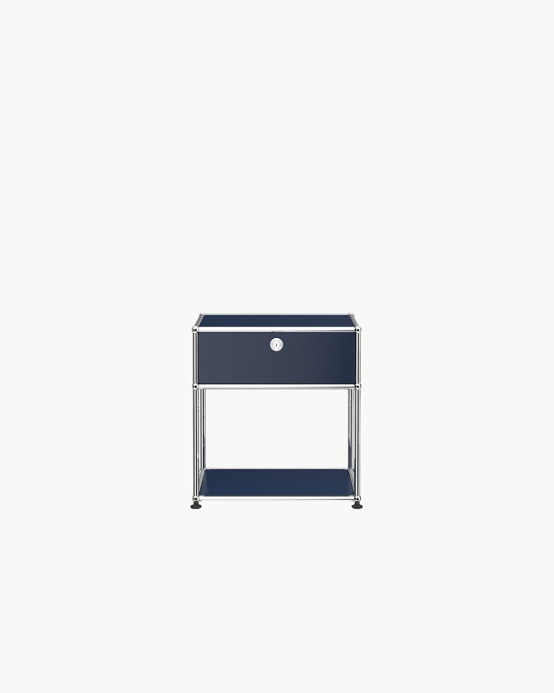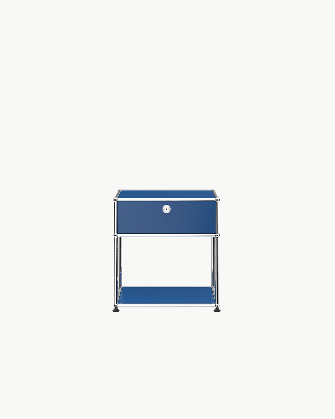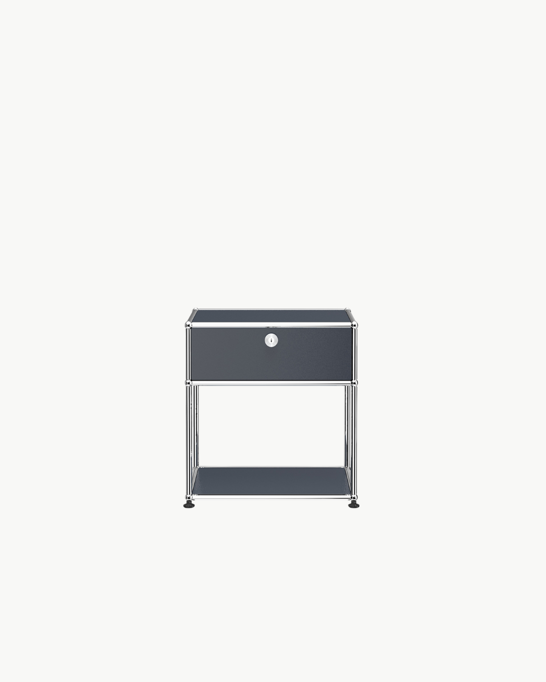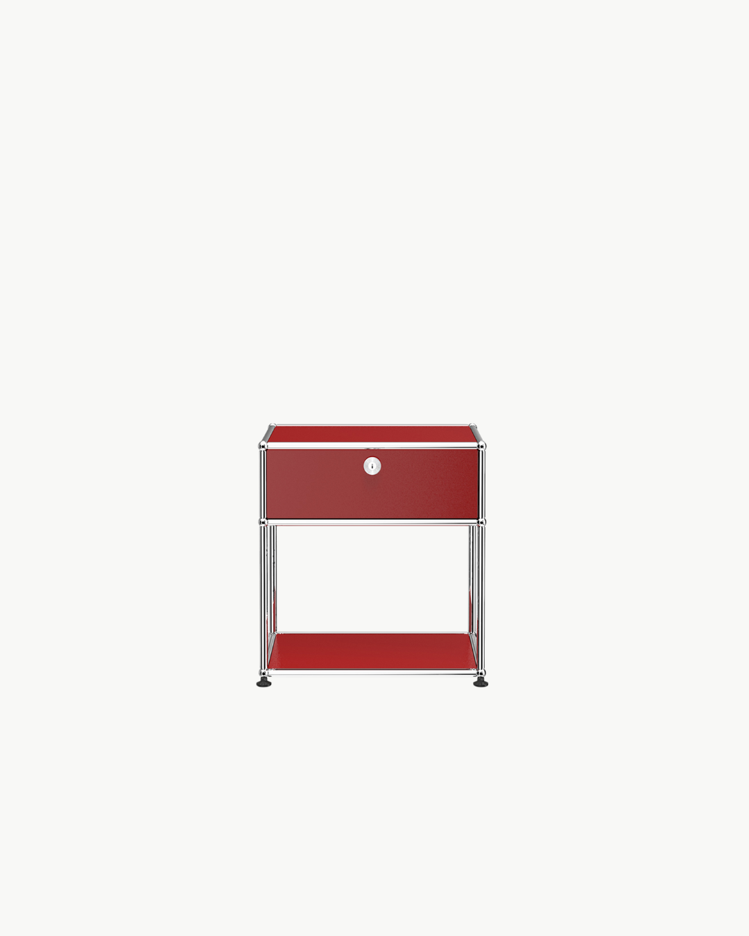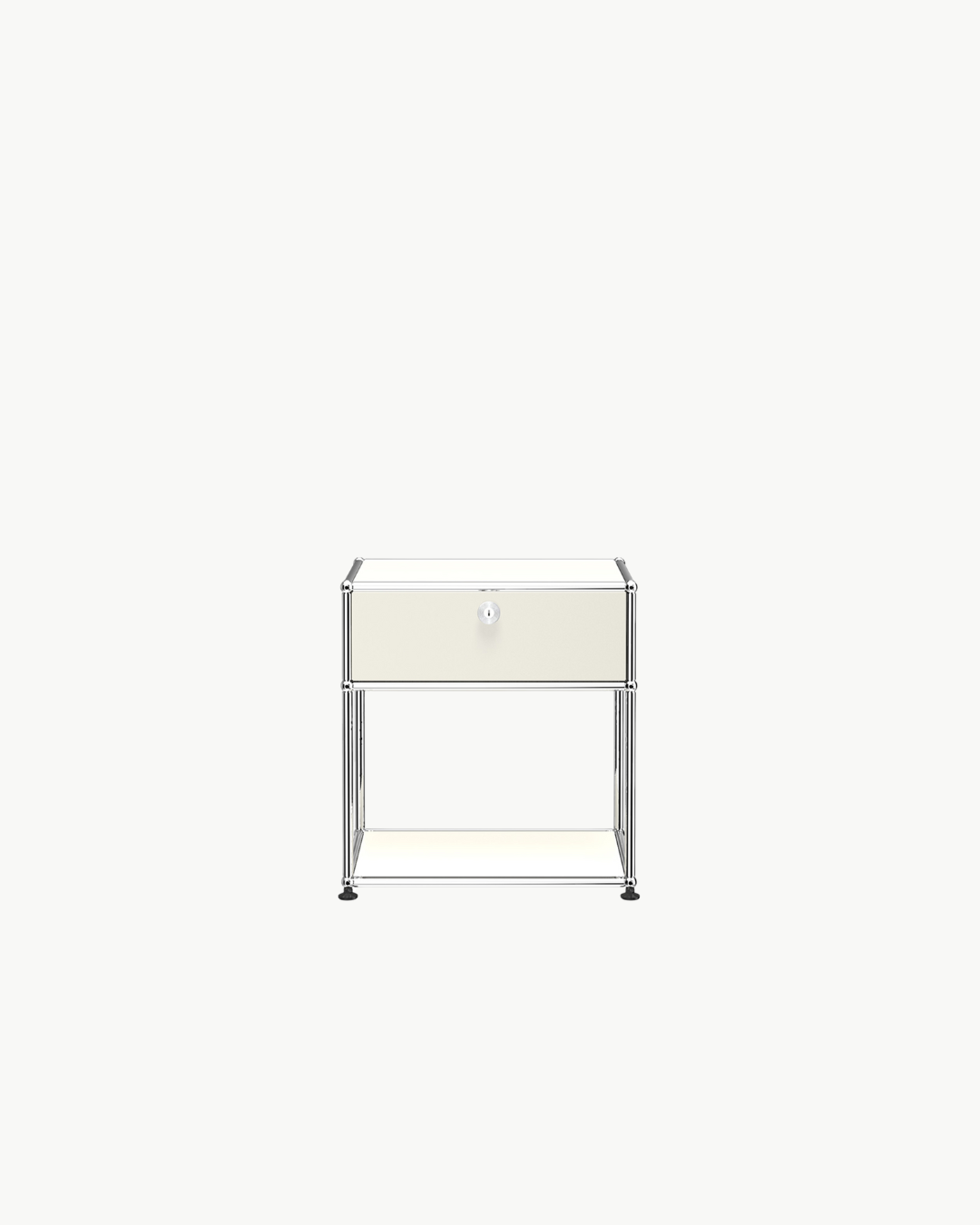 Nattbordet ble designet i 1963 av de kjente designerne Fritz Haller og Paul Schaerer. Modulen er utstyrt med en nedfellbar luke og kommer i flere USM signaturfarger, som er vakkert innrammet av forkrommet stålrør. Systemet har praktiske tilpassbare funksjoner som lar deg enkelt bytte ut komponenter eller legge til flere moduler. Dette nattbordet vil være en vakker detalj i hjemmet ditt.