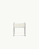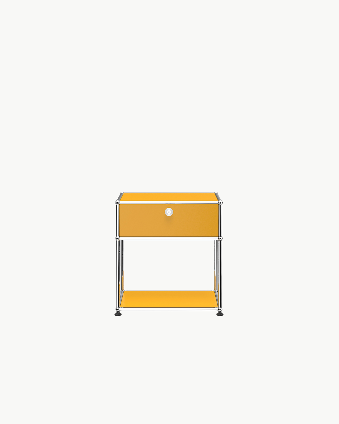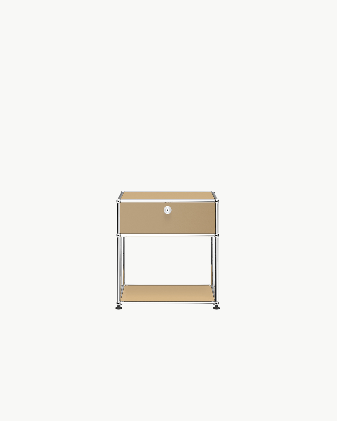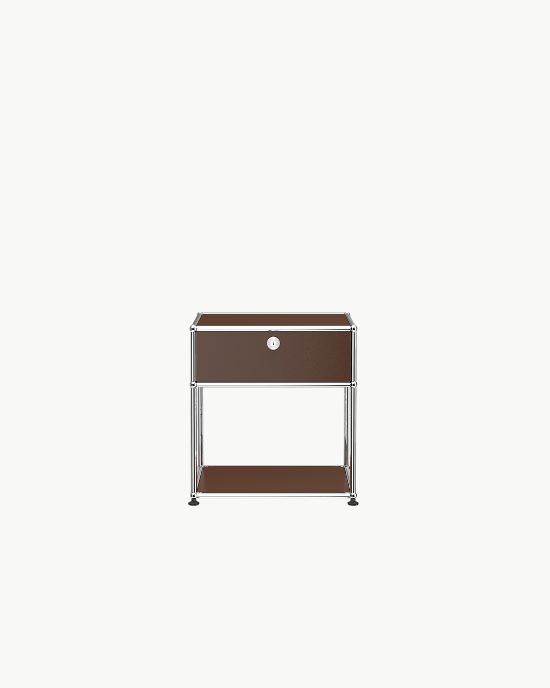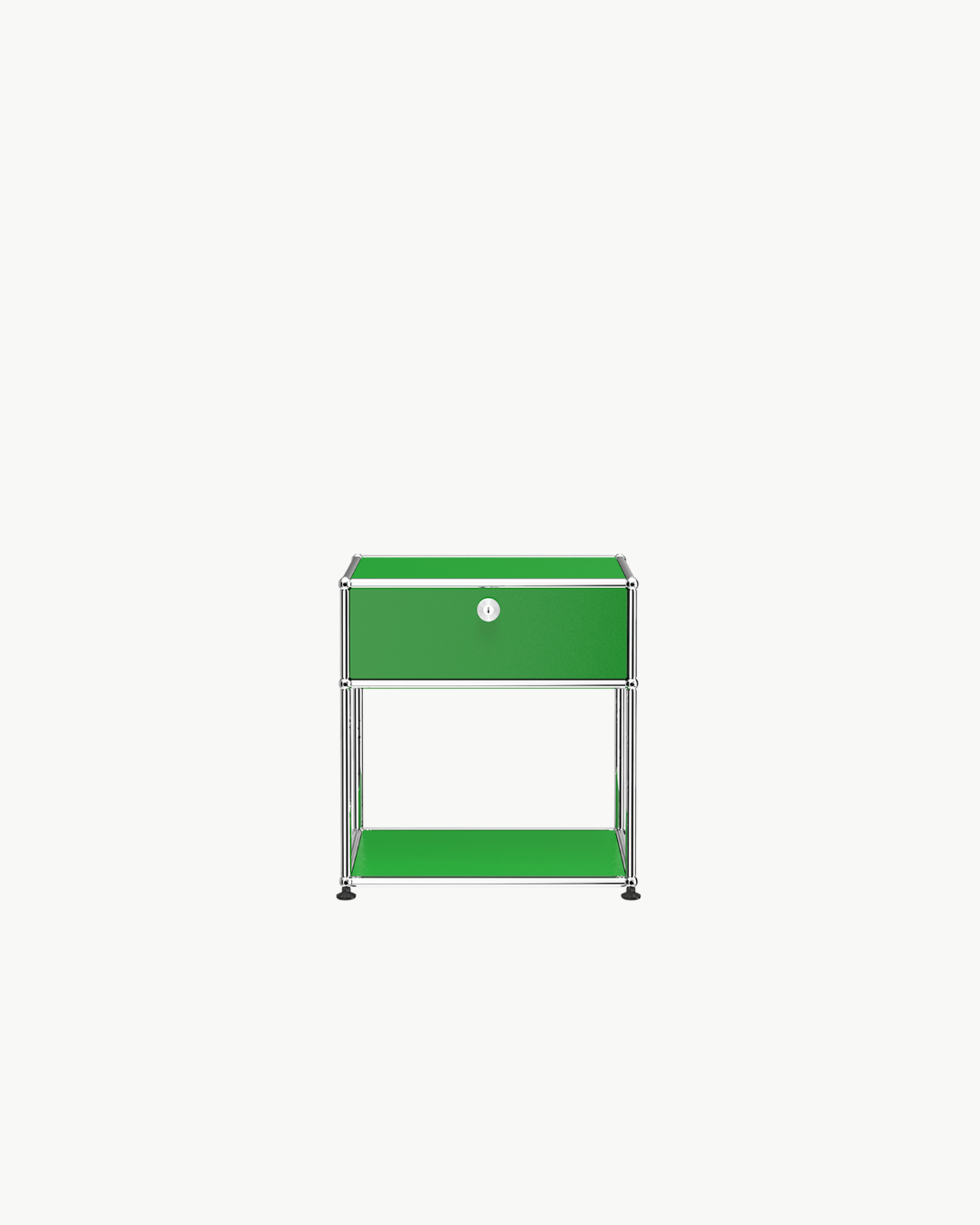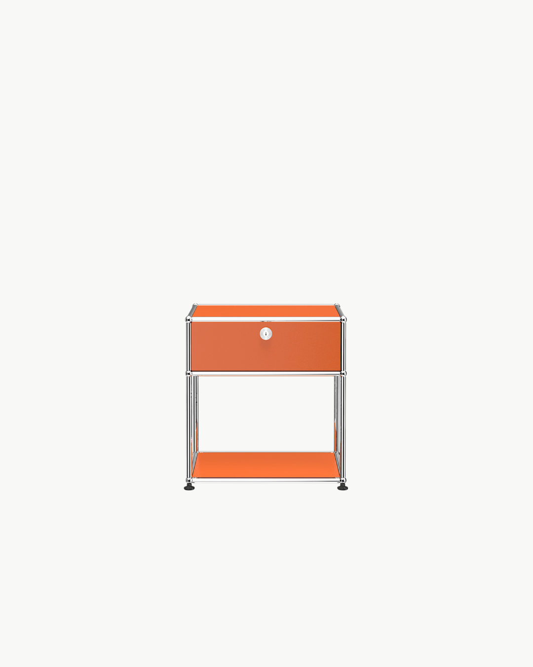 Nattbordet ble designet i 1963 av de kjente designerne Fritz Haller og Paul Schaerer. Modulen er utstyrt med en nedfellbar luke og kommer i flere USM signaturfarger, som er vakkert innrammet av forkrommet stålrør. Systemet har praktiske tilpassbare funksjoner som lar deg enkelt bytte ut komponenter eller legge til flere moduler. Dette nattbordet vil være en vakker detalj i hjemmet ditt.