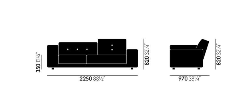 Vitra Polder Kompakt Sofa 225cm The Sea Greens Lav Høyre armlene