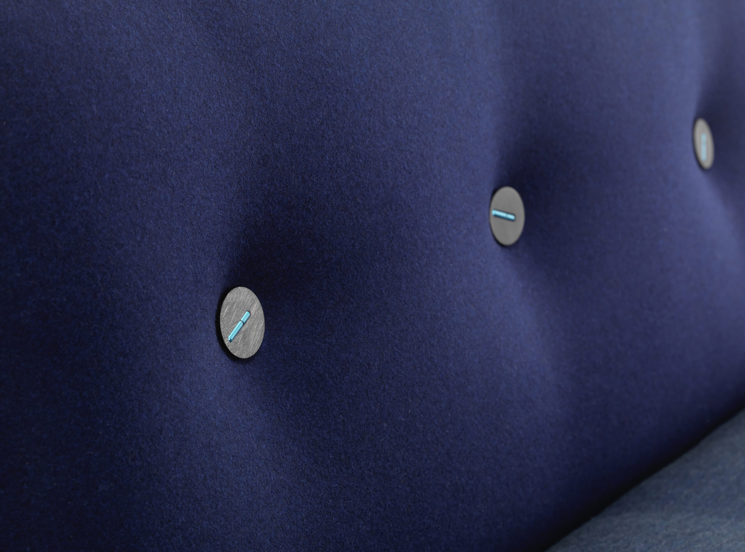 Knappene til Polder-sofaene, designet av Jongerius i en collage av farget plast, aluminium og lær, er en spesielt slående detalj. De gir ikke bare en attraktiv kontrast til de myke vevde stoffene, men lette også lett avmontering av polstrede deksler for rengjøring, takket være en enkel festeanordning.