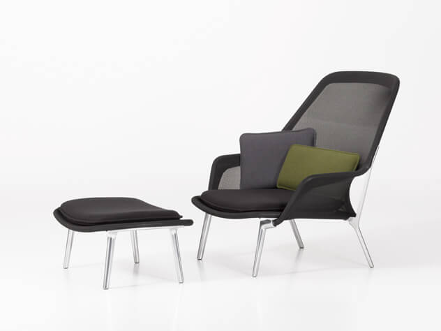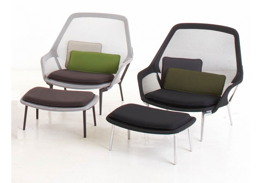 Vitra Slow chair utmerker seg med sin fantastiske sittekomfort laget i meget slitesterk netting og sprøytet i sjokoladefarget lakk eller polert metall.Stolen kommer i en rekke farger med matchende puter.